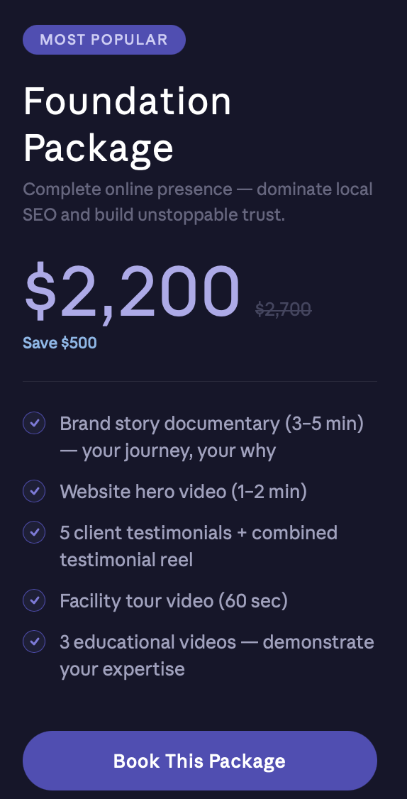 We create cinematic video content for fitness professionals in SoCal who are tired of being the best-kept secret in their market.