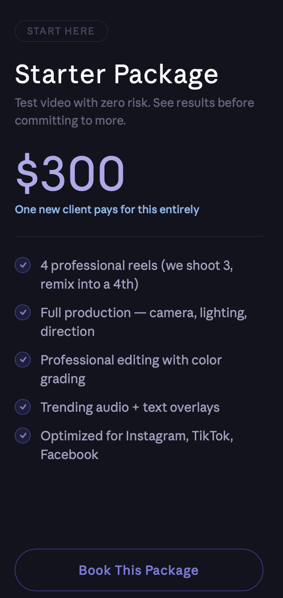 In 2026, clients choose their coach before they ever walk through the door — and they choose based on what they see online. If your content looks amateur, they assume your training does too. Corporate chains spend thousands making sure they look the part. You don't need their budget. You need one partner who knows how to make you look like the pro you already are.